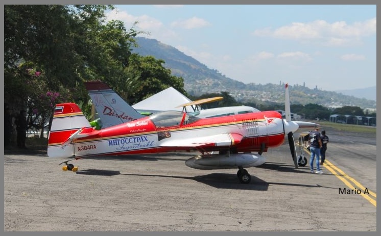 El avión, pilotado por Timofeev, participó en el Show Aéreo Ilopango 2003, y desde esa fecha se tienen múltiples reportes de vuelo en el país. Su última llegada registrada fue el lunes 26 de junio de 2017. Desde entonces y hasta su salida a principios de 2021, permaneció resguardado en MSSS, donde fue una presencia habitual en exhibiciones estáticas durante los eventos aéreos. Un detalle distintivo de su librea eran las palabras “Ингосстрах” / “Ingosstrakh” en el fuselaje, correspondientes al nombre de su compañía aseguradora de origen ruso.