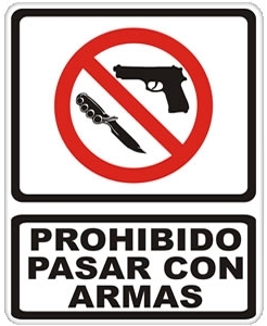 No se permitirá el ingreso de armas de cualquier tipo: de fuego, aire comprimido, electrochoque (TASER), armas corto punzante, etcétera; No habrá un lugar dedicado para dejar en custodia el armamento debidamente registrado.